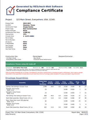 A REScheck report is a compliance certificate generated by the Department of Energy's software. It provides a fast, simple, and accurate way to prove that a new home, addition, or alteration meets the requirements of the IECC (International Energy Conservation Code) or a specific state energy code. Most local building departments require a REScheck report to be submitted with your plans before they will issue a building permit.